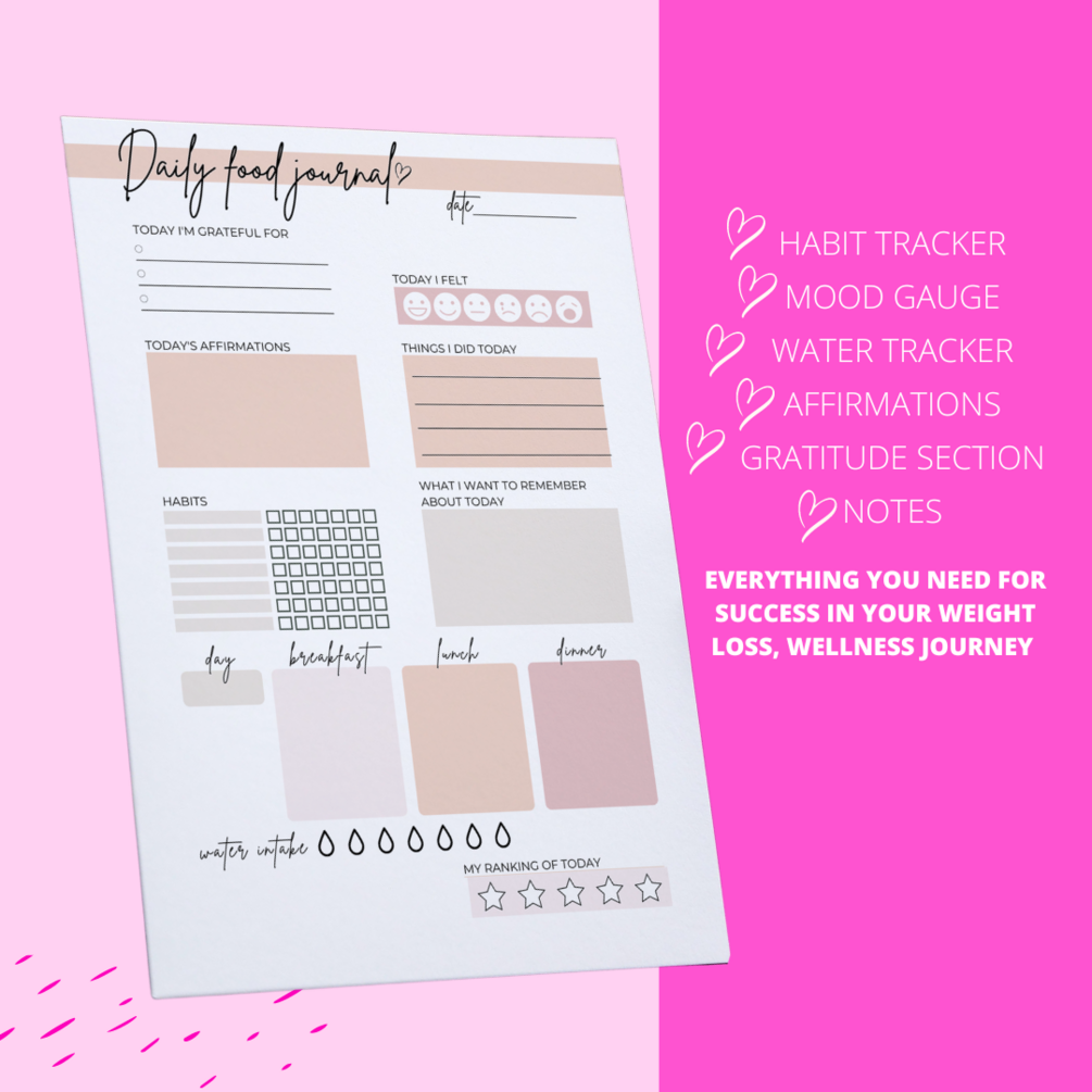 5 ways to track & plan your weekly goals. Daily food journal includes habit tracker and mood gauge.